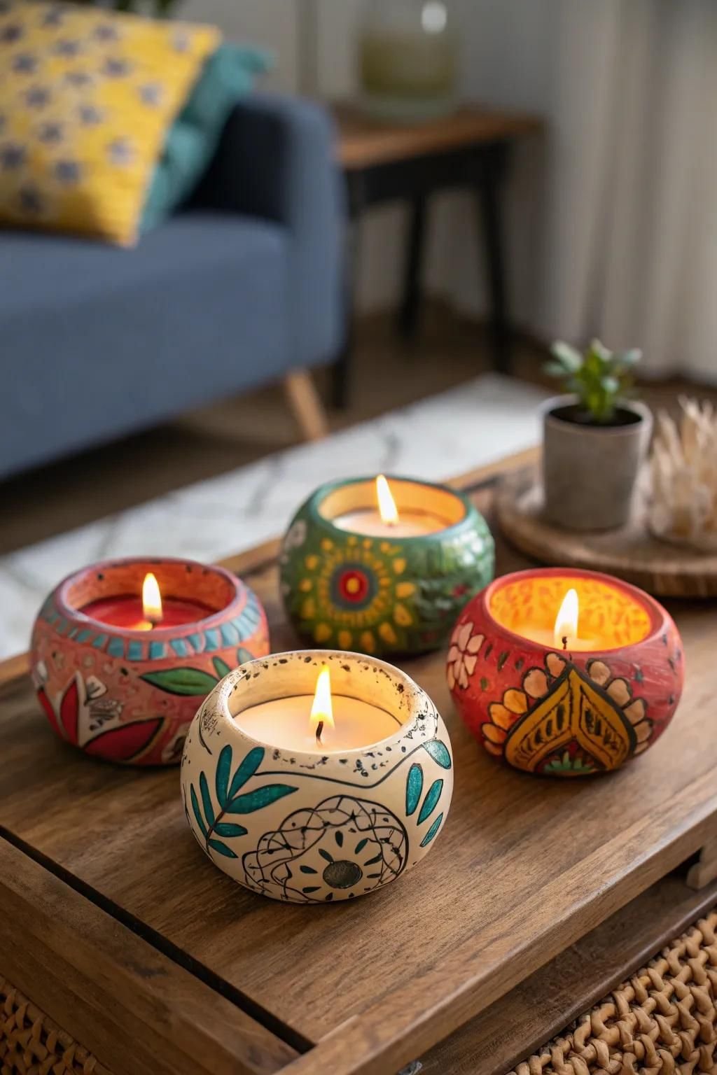 Diyas hold a deep cultural meaning in India as symbols of light, hope, and positivity, and are central to celebrations like Diwali, Navratri, and other auspicious occasions. Terracotta diyas made from natural clay are biodegradable and eco‑friendly, making them a thoughtful alternative to plastic or single‑use decorative lights. Ceramic tealight holders, often hand‑painted or sculpted in floral, geometric, or themed forms, help diffuse the candlelight through cut‑outs and patterns, casting beautiful shadows on nearby surfaces. Styled on entrance steps, balconies, mandirs, table setups, or window sills, they instantly create a festive, welcoming atmosphere.